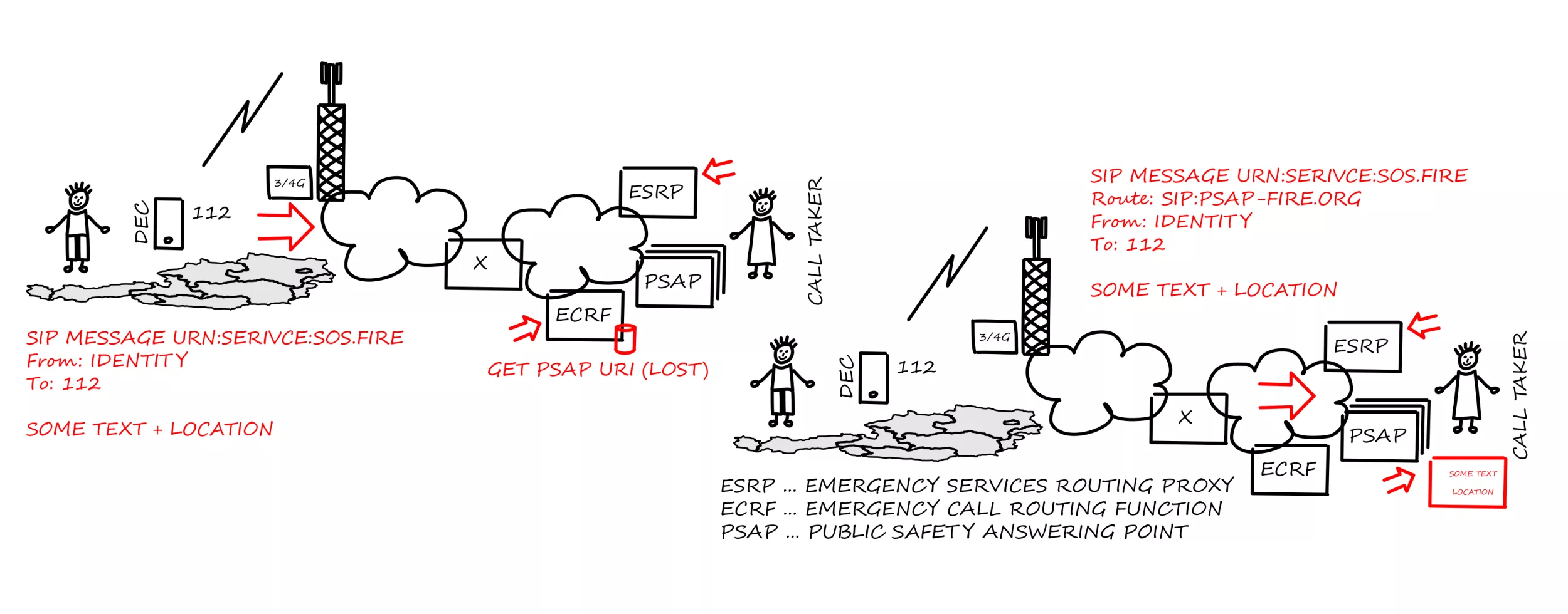 Accessing emergency services, for the most part, is limited to an ordinary voice call though some areas now support SMS to access emergency services. Emergency calling is based on straightforward technical building blocks and a few legal/regulatory aspects. Technical elements, typically part of an incumbent telephone service provider, ensure that emergency calls are routed to the most appropriate emergency center or public safety answering point (PSAP). Typically, routing utilizes static information such as dialling code/area code and a table that maps those codes to centers which are identified by unlisted and often undialable numbers. That works well in a legacy environment but causes some challenges in the case calls originate from different sources or utilize different technologies like VoIP or VoLTE. NG112 provides answer to such challenges in defining a Session Initiation Protocol (SIP) based architecture and functional elements to implement a mapping and routing process that has the potential to support any originating technology subject to the condition that sufficient location information is available. The following introduces core elements that are the ESRP (Emergency Services Routing Proxy) and the ECRF (Emergency Call Routing Function). Please note that these elements, among others, and their interfaces are currently being standardized by ETSI (SC EMTEL) and have already been introduced as NG9-1-1 architecture by the National Emergency Number Association in the US.