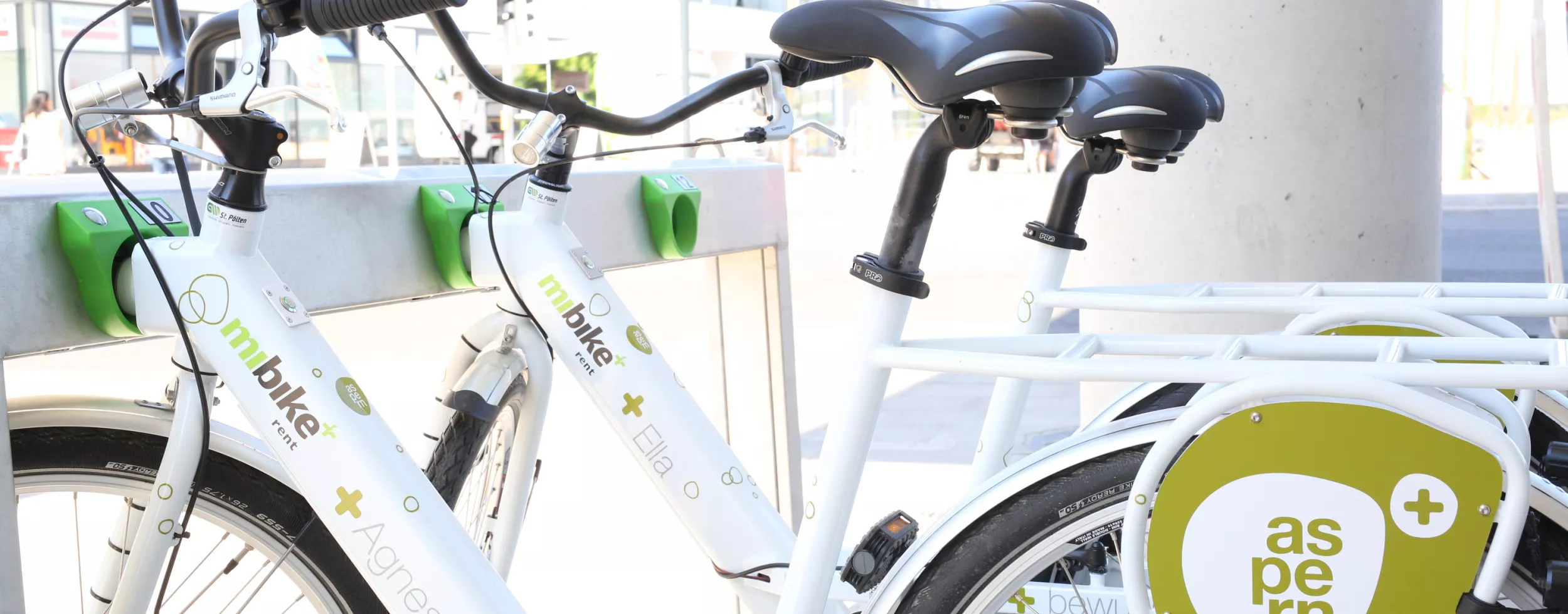 Die Seestadt Aspern ist eines der größten Stadtentwicklungsgebiete Europas und beherbergt heute schon gut 6.000 Menschen, bis 2030 werden es über 20.000 Menschen sein. Der südliche Teil ist bereits bezogen bzw. wird intensiv fertiggestellt, im nördlichen Teil starten in den kommenden Monaten die Bauarbeiten. Um das Ziel von über 40 Prozent Anteil des öffentlichen Verkehrs zu erreichen, wurde ein Mobilitätsfonds ins Leben gerufen. Dieser speist sich aus Geldern im Rahmen der Garagenerrichtung und aus Einnahmen des laufenden Garagenbetriebs. Ein zentrales aus diesem Fonds finanziertes Projekt ist das Fahrradverleihsystem SeestadtFLOTTE mit modernen E-Bikes und Leih-Lastenrädern. Diese Leihräder können an den Stationen rund um die Uhr ausgeborgt werden und das Angebot wird gut von den BewohnerInnen angenommen.
