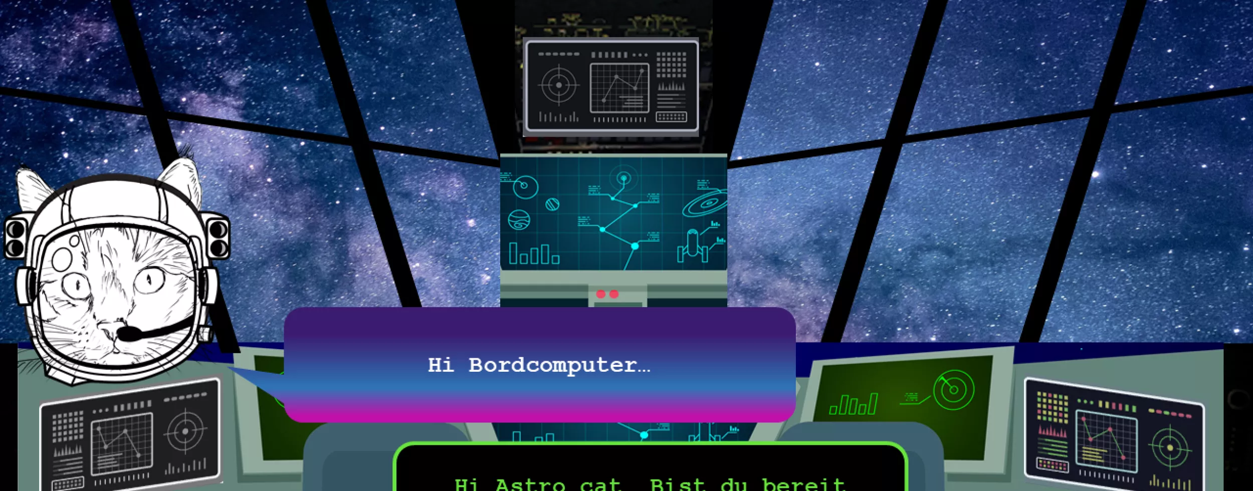 Anhand eines Drehbuches werden die Dialoge skizziert, die Astro Cat - die Protagonistin des Spiels - mit ihrem Bordcomputer führt. Das Fake-Shop Explorer Spiel ist im Weltall situiert, Astro Cat hat dabei die Aufgabe, mithilfe ihres intelligenten Computers, Planeten zu erkunden und diese für andere intergalaktische Reisende zu bewerten: Handelt es sich um einen sicheren Handelsposten, oder doch um ein Piratenlager?