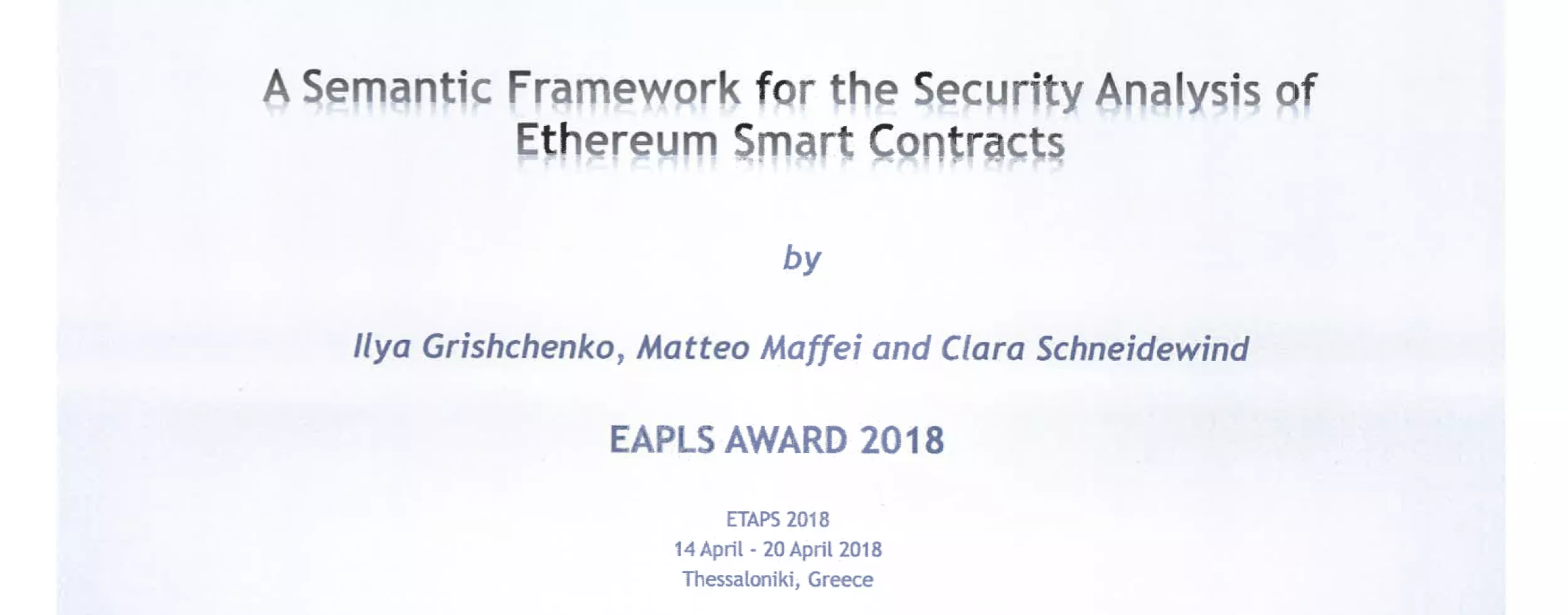 Und tatsächlich: Mit unserem Papier ,A Framework for the Security Analysis of Ethereum Smart Contracts” haben wir einen von 3 Best Paper Awards gewonnen!