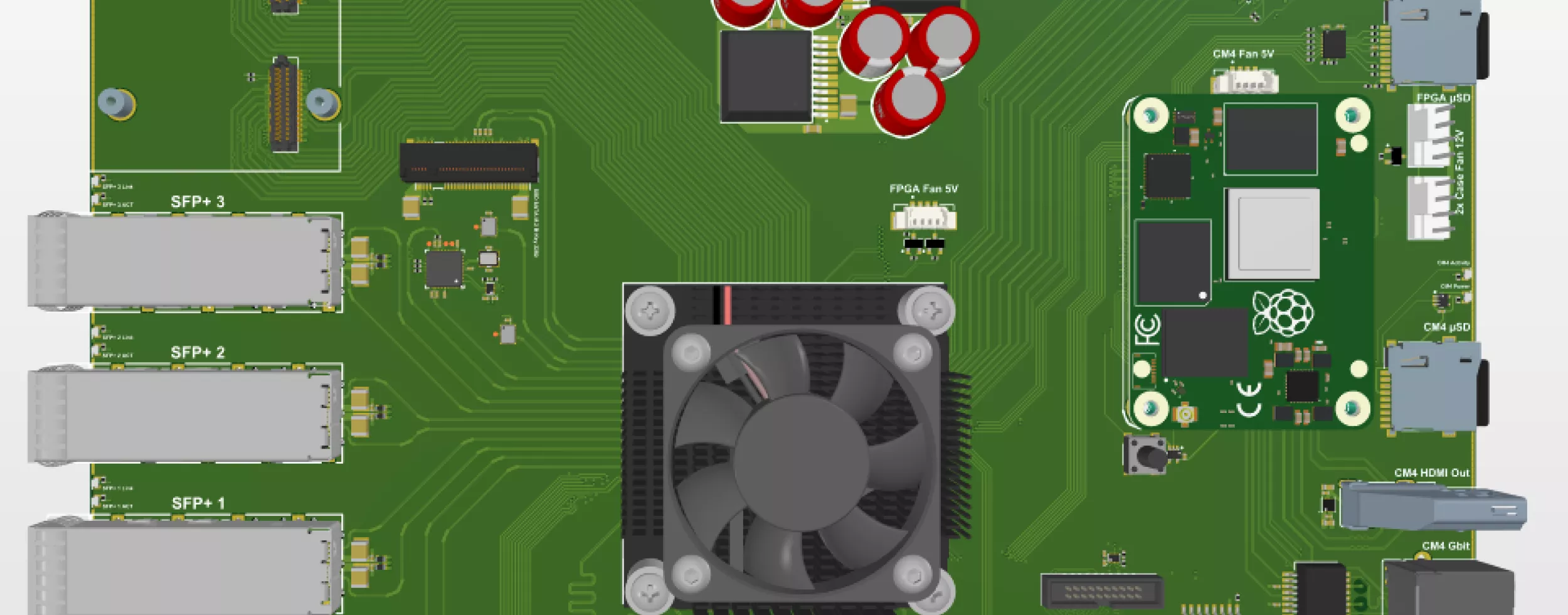 Vor der Entwicklung des Boards wurde noch eine Adapterplatine zwischen FPGA und Management CPU entwickelt, die dem Softwareentwickler es ermöglicht, frühzeitig seine Software zu testen.