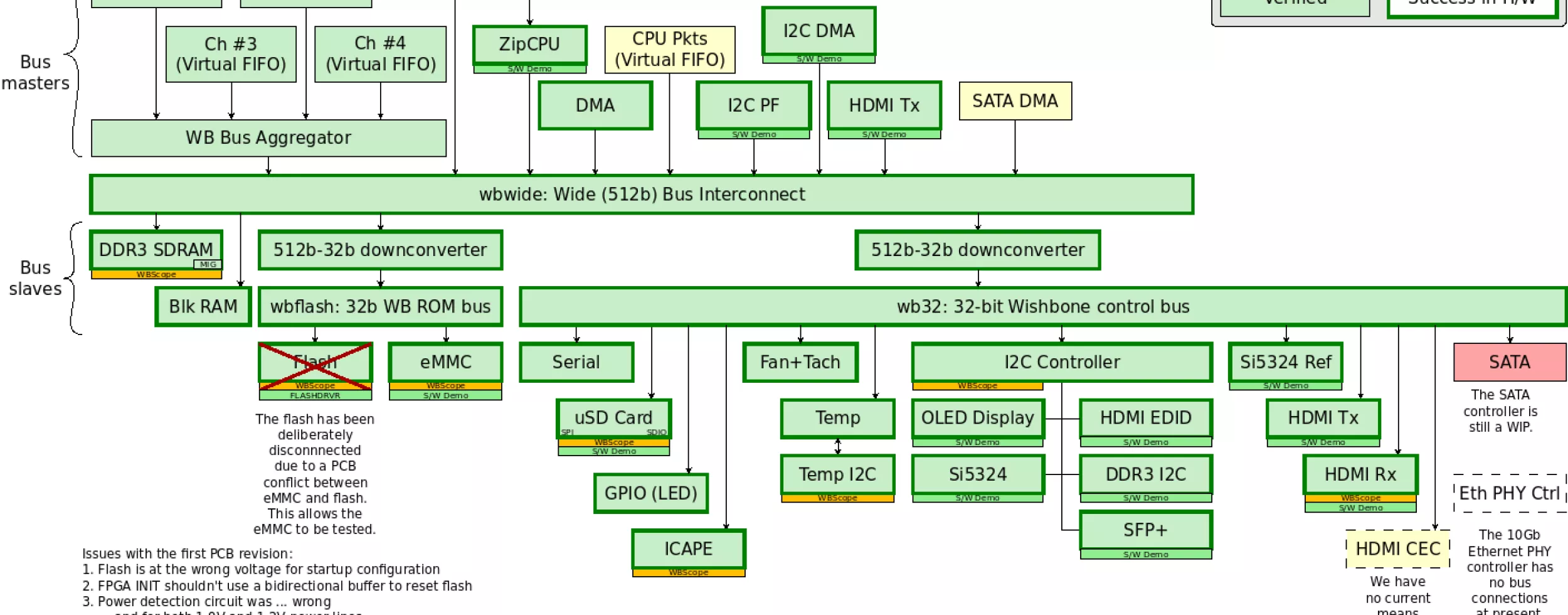 The following graphic shows the architecture of our switch gateware design which we hope to test for function with two 10 Gbit Ehtenrent cards in PCs in the comming weeks.