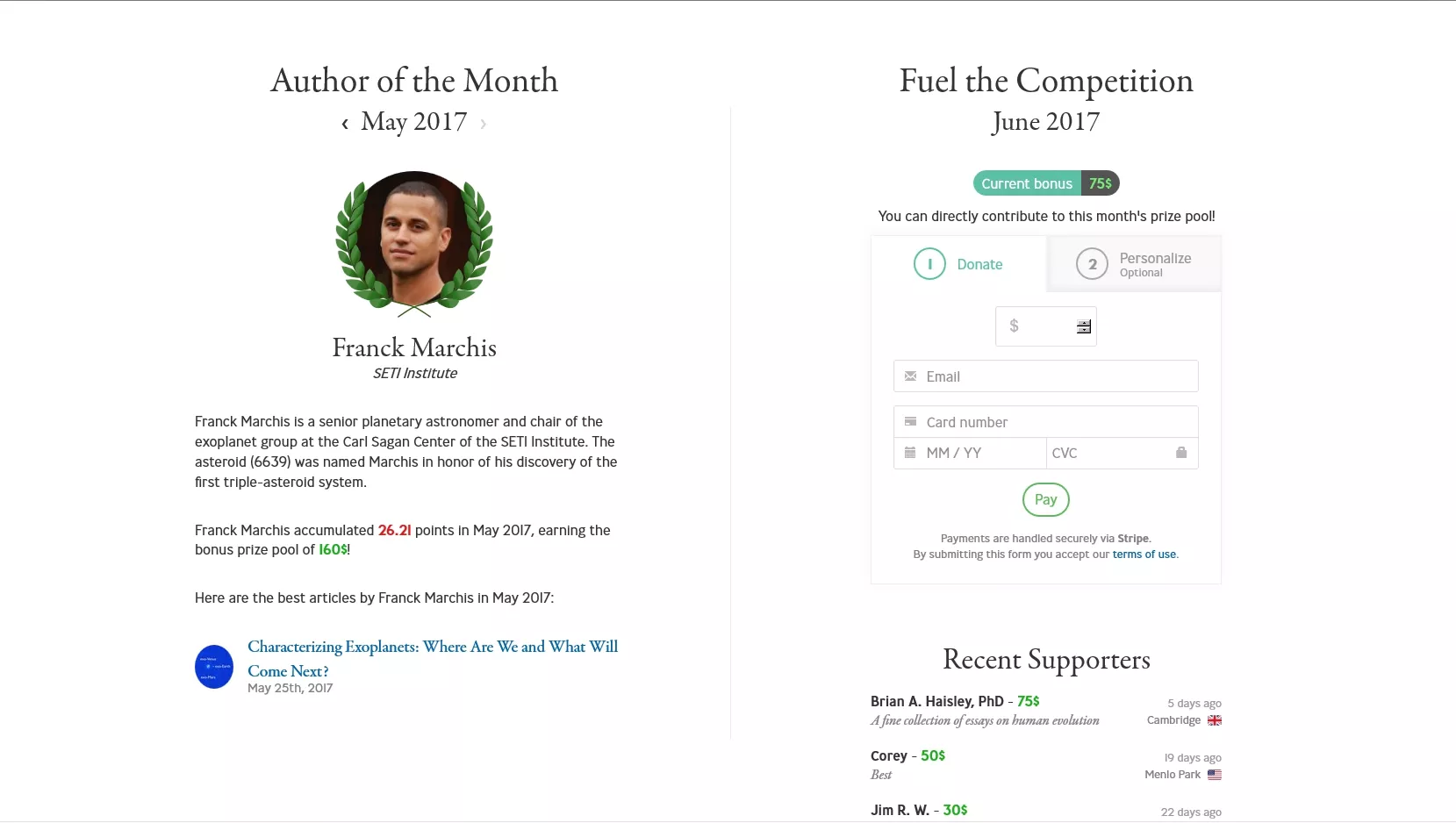 Einführung eines neuartigen Scoring-Algorithmus für die Quantifizierung des Impacts von Beiträgen auf Capeia. Dieser Score dient auch als Grundlage für die Vergabe des monatlichen Author-of-the-Month Awards.