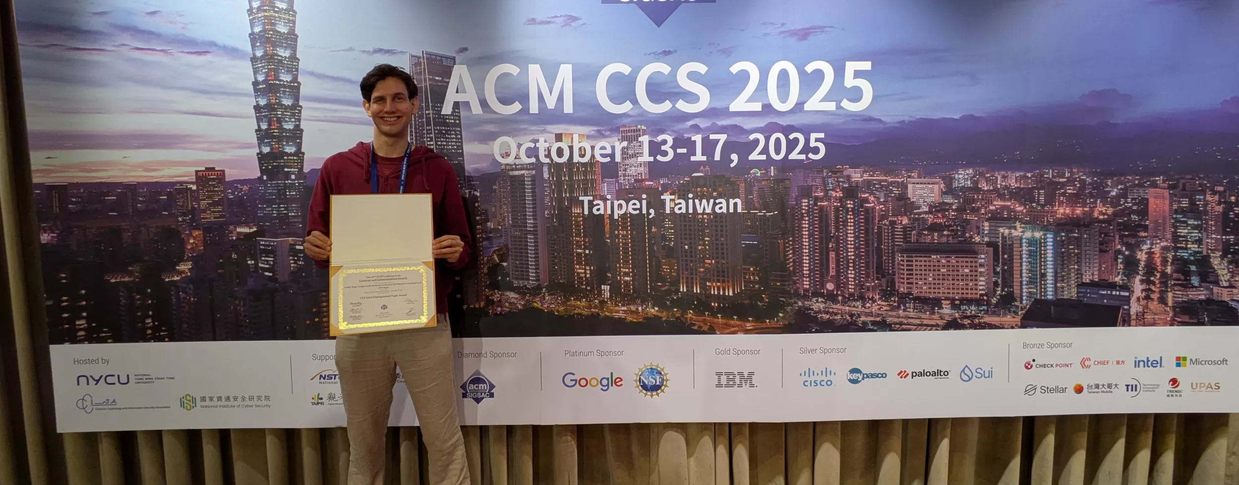 Our work, “Leaky Apps: Large-scale Analysis of Secrets Distributed in Android and iOS Apps,” was honored with the Distinguished Paper Award at ACM CCS 2025 (ACM SIGSAC Conference on Computer and Communications Security).