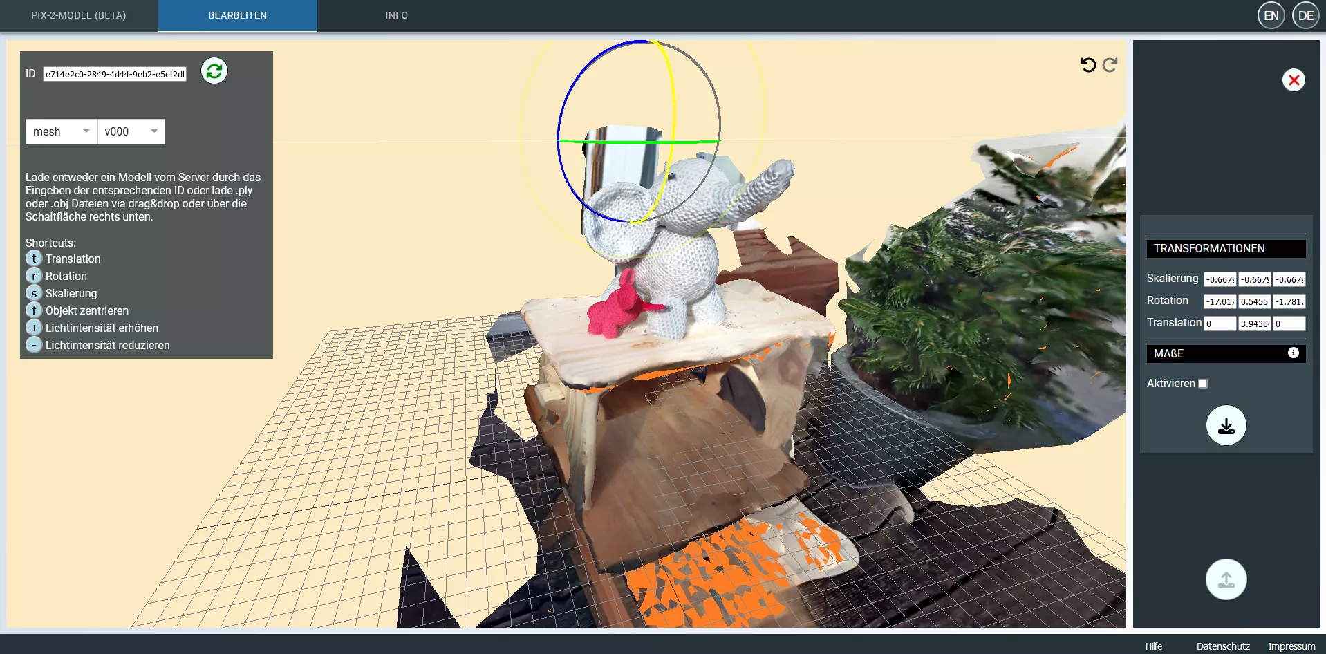 Punktwolken können einfach, z.B. mit manchen Smartphones und aus Fotos mit Structure-from-Motion erzeugt werden. Unser Webservice übernimmt die Konvertierung in ein Mesh, welches einfach und effizient in Echtzeit angezeigt werden kann. Unsere Rekonstruktion benötigt keine Oberflächennormalen und liefert bessere Ergebnisse als der State-of-the-Art, benötigt allerdings eine Grafikkarte für akzeptable Rechenzeiten. Ein Webservice würde diese Rekonstruktion allen Menschen zur Verfügung stellen und nur einen Browser erfordern.