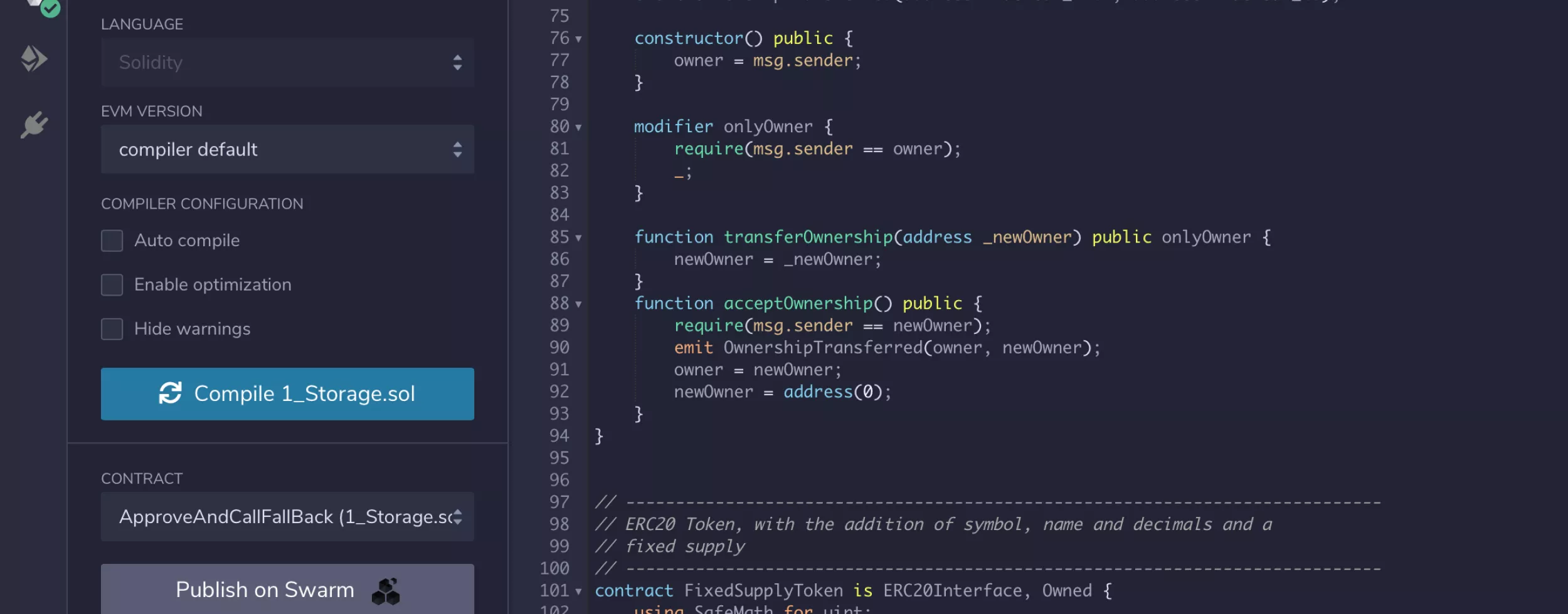 Remix also allows to select a specific compiler version