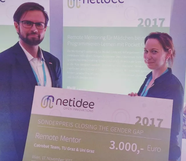 Catrobat ist ein freies open source nonprofit Projekt, an dem bisher 500 Freiwillige aus 25 Ländern mitgearbeitet haben. Mit Pocket Code haben wir eine intuitive visuelle Programmier-App geschaffen, mit der Jugendliche das Erstellen ihrer eigenen Apps direkt auf ihren Handys erlernen können. Die App steht in 40 Sprachen zur Verfügung und wurde bereits 500.000 mal installiert.
