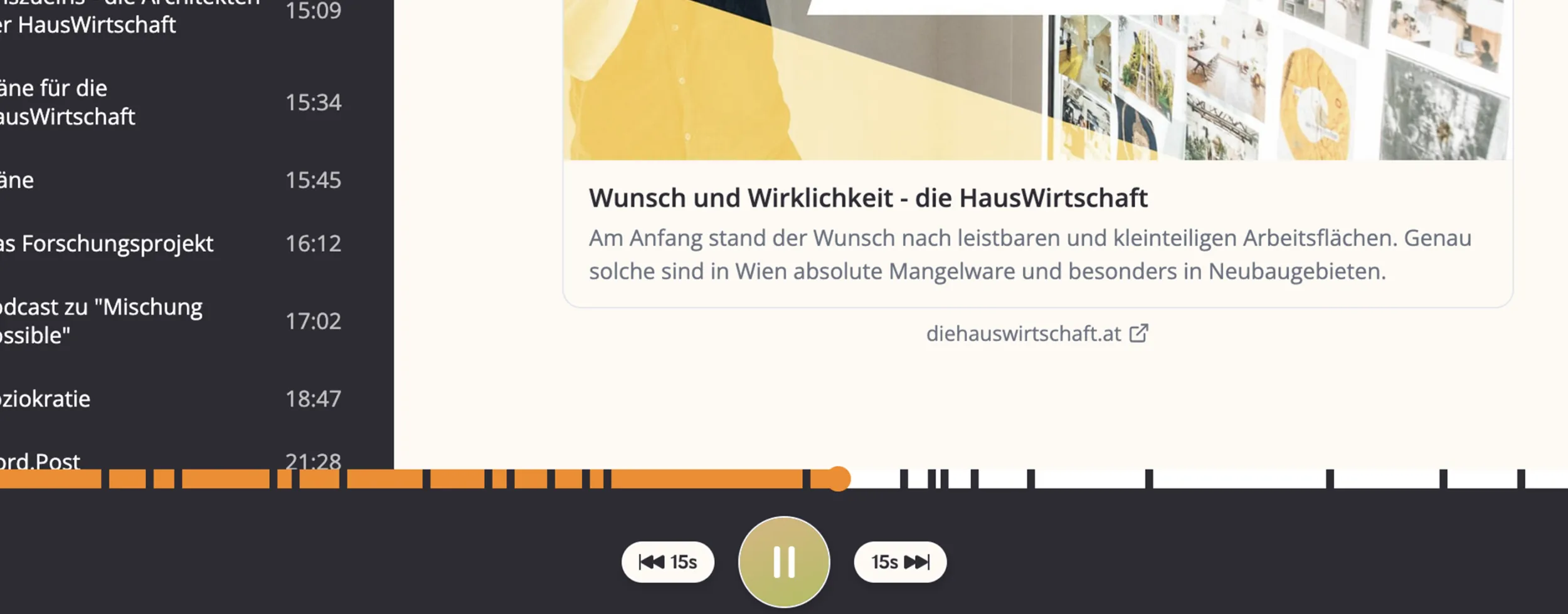 In Sachen Barrierefreiheit wurde die Tastaturbedienung verbessert: Nutzerinnen und Nutzer können nun von Kapitel zu Kapitel tabben und mit Enter gezielt dorthin springen, wo sie weiterhören wollen. Das erleichtert die Bedienung mit Screenreadern und macht den Player insgesamt zugänglicher. Zwischen den Kapiteln sorgen kleine, auf verschiedene Bildschirmgrößen abgestimmte Abstände dafür, dass die Grenzen klar sichtbar bleiben, ohne dass der Balken zerhackt wirkt.