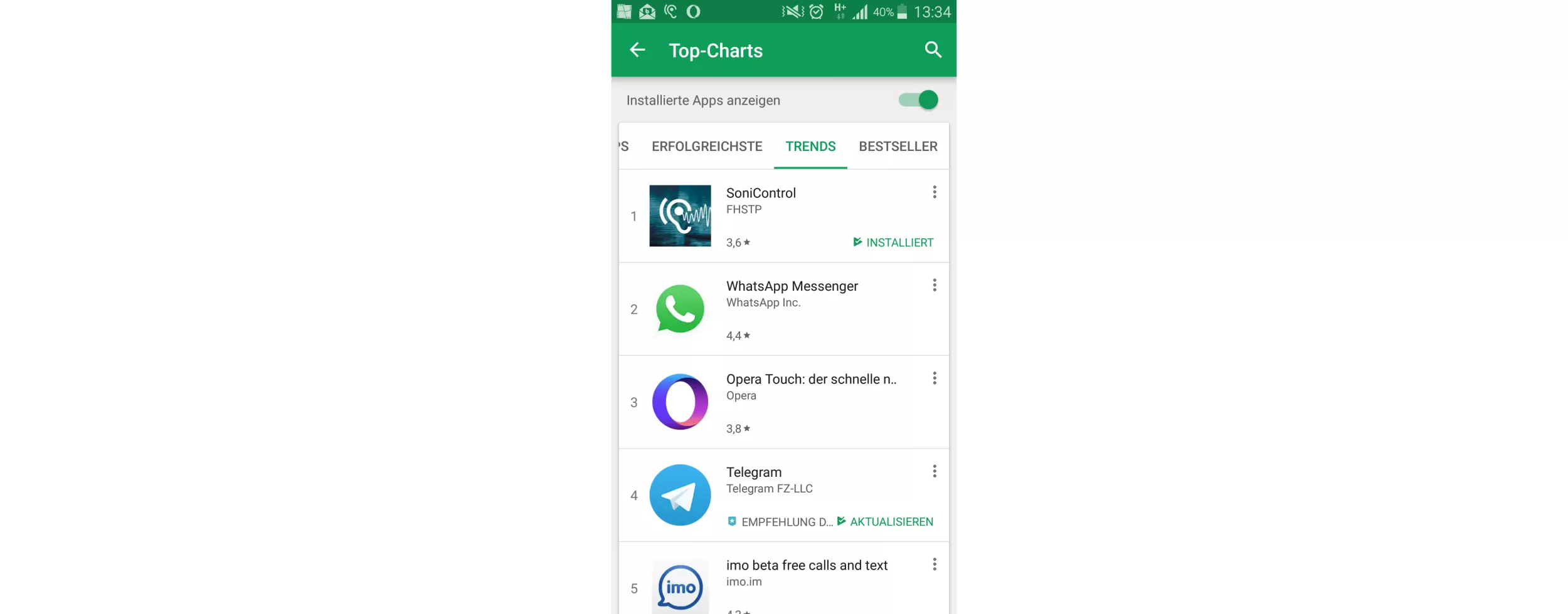 We are happy to announce that today the SoniControl app scored first in the list of the most trending apps on Google Play score, even overtaking Whatsapp. We got over 6000 downloads in the last 3 days. The firewall is steadily gaining popularity, among others due to a number of press releases, such as here on heise.de