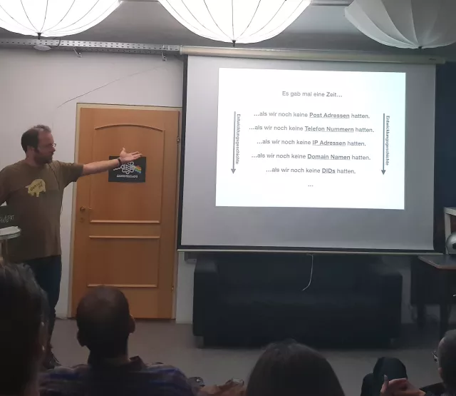 Hier wurden unter anderem Decentralized Identifiers (DIDs), Verifiable Credentials, DID Auth, und andere Baussteine für souveräne bzw. dezentrale digitale Identität entwickelt. Im Github-README dieses Workshops (sowie der vergangenen Workshops) gibt es zahlreiche interessante Beiträge zu diesem Thema (meist technischer Natur, aber nicht nur).