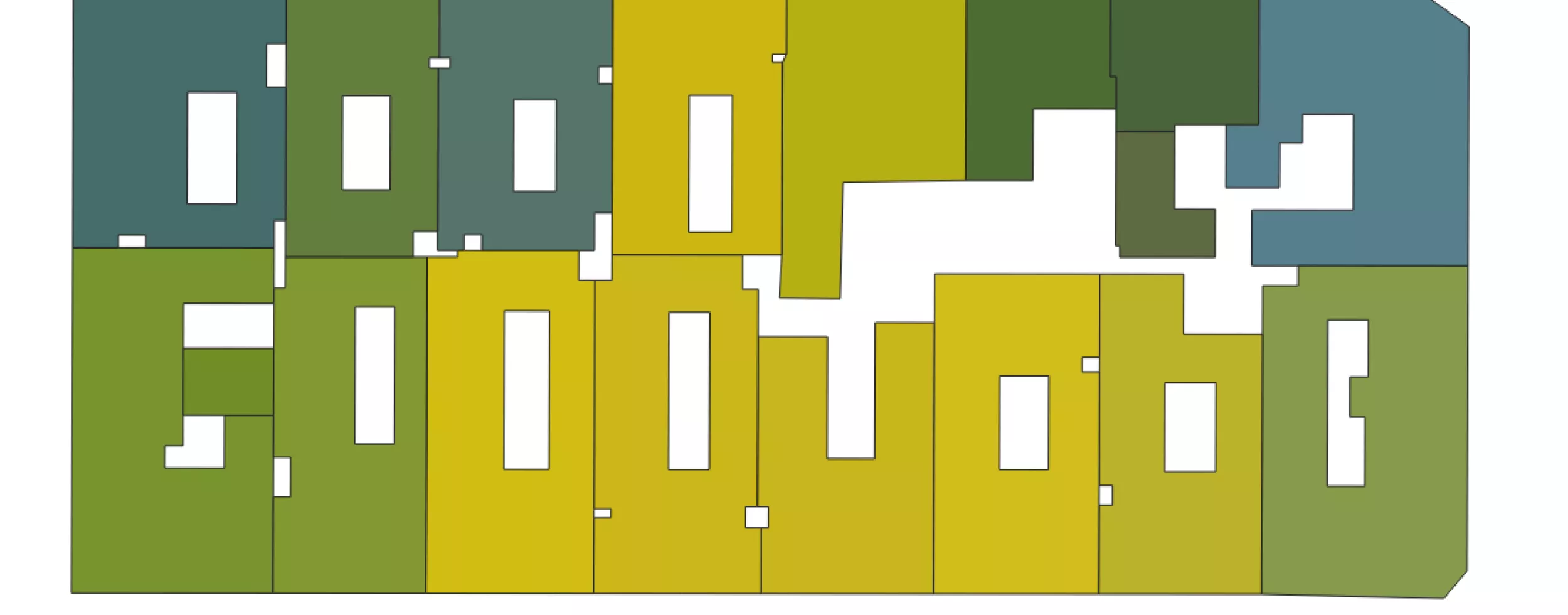 Der letzte Schritt beinhaltet die Zuordnung und Klassifikation der Gebäude basierend auf den zuvor gesammelten Farbdaten. Wenn der Medianwert der RGB-Werte aller Samplingpunkte eines Gebäudes innerhalb der RGB-Spannweite der Legendenpunkte liegt, wird dem Gebäude eine entsprechende Klassifizierung zugeordnet. Falls keine direkte Zuordnung möglich ist, werden die Gebäudepunkte klassifiziert. Die finale Klassifizierung erfolgt dann basierend auf der Mehrheit der zugeordneten Samplingpunkte. Das endgültige Ergebnis ist eine detaillierte, vektorisierte Karte, auf der die Referenzgeometrien entsprechend ihrer thematischen Klassifikation eingefärbt sind.