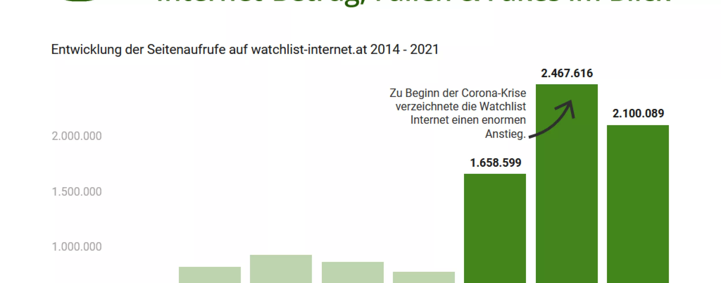 Dabei informiert sie in Form von Warnmeldungen über aktuelle Betrugsfälle und gibt Tipps, wie man sich vor gängigen Maschen schützen kann. Gleichzeitig erhalten Betroffene konkrete Anleitungen für weitere Schritte zur Schadensbegrenzung. Mit ihrem Angebot erreicht die Watchlist Internet mittlerweile rund 2 Millionen BesucherInnen im Jahr.