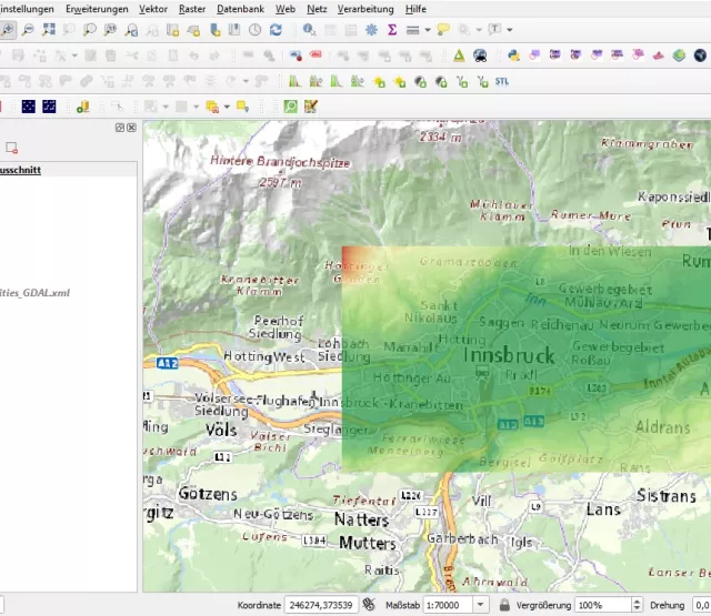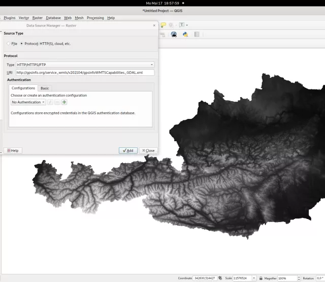 - Beispieldienste im Q-GIS fix integriert (z.B. Höhenmodell Vorarlberg 1m, Landnutzung Österreich 10m, DGM Österreich 10 m, ...) und erweiterbar
